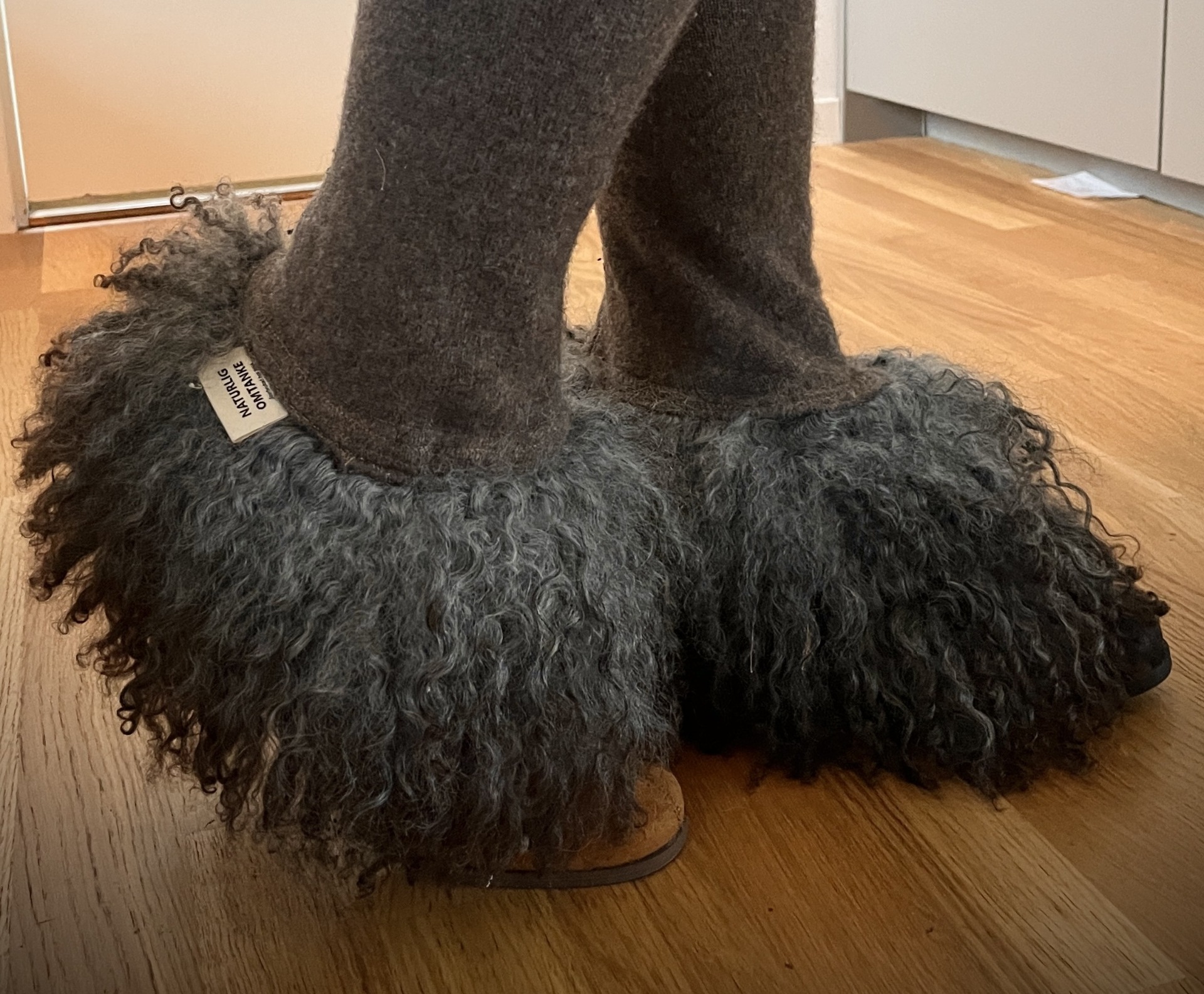 Höga benvärmare i mjuk merinoull med detaljer i Gotlandsskinn – både varma och stilfulla.
