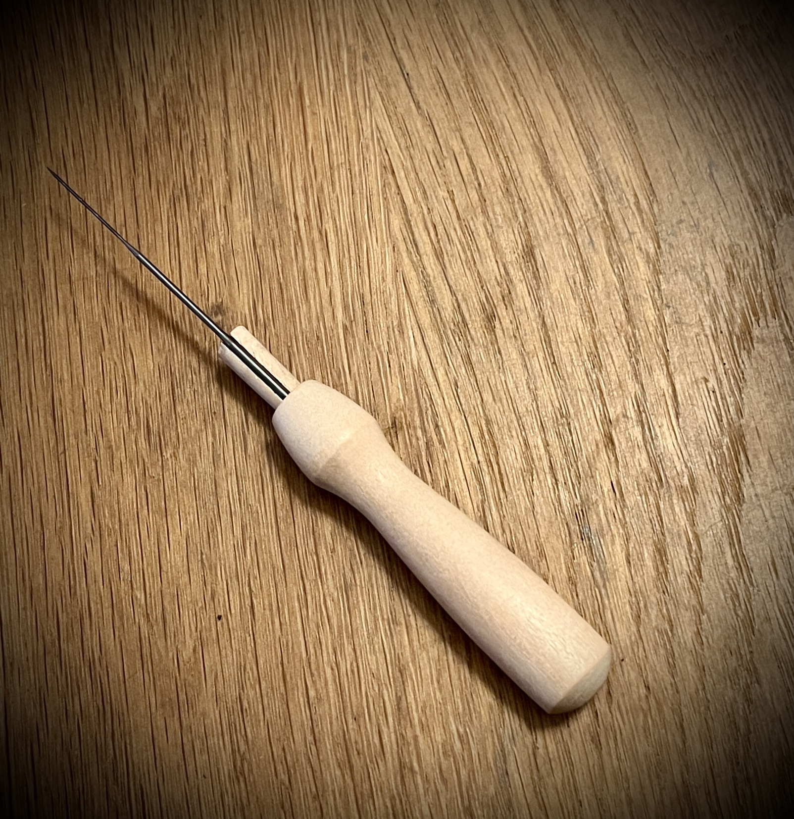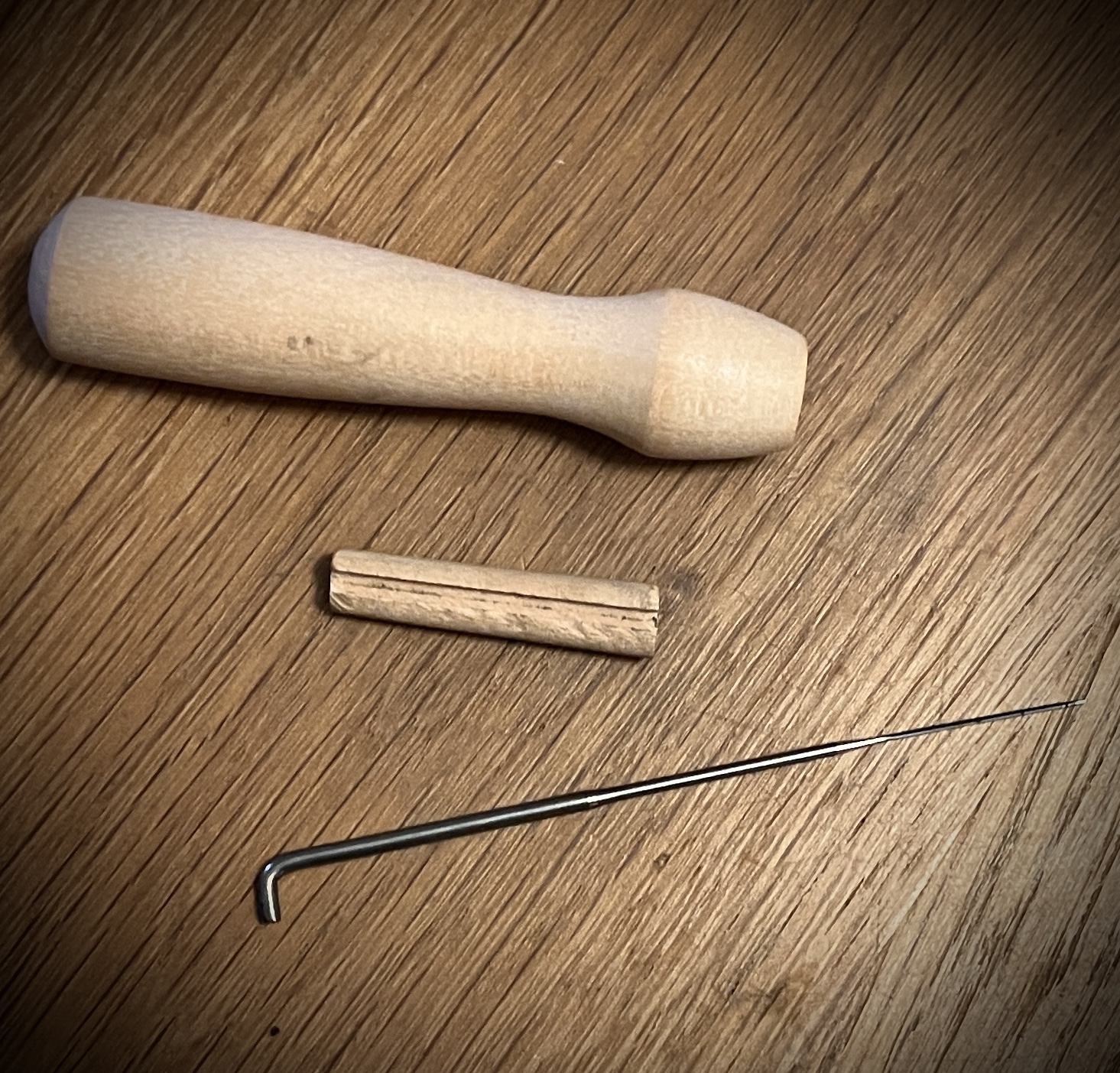 Handtag till filtnål i trä