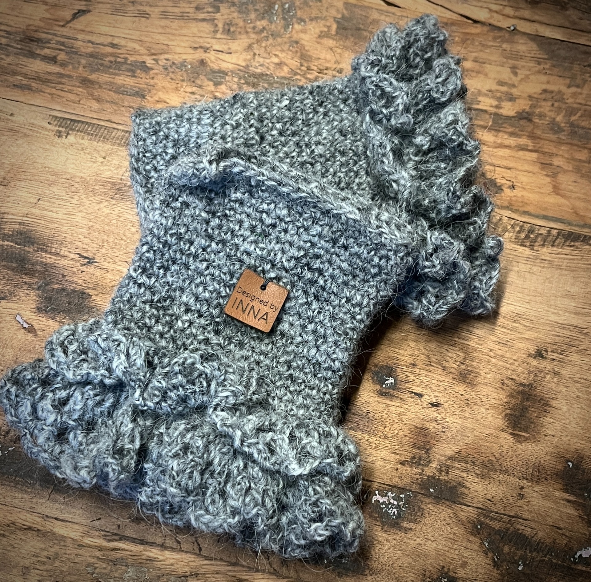 Handvirkade handledsmudd / pulsvärmare med liten volang som ger snygga och dekorativa ärmslut. Perfekta för att addera en mjuk och personlig detalj till din outfit, både till vardag och fest. Välj din favoritfärg i menyn för att matcha din stil.